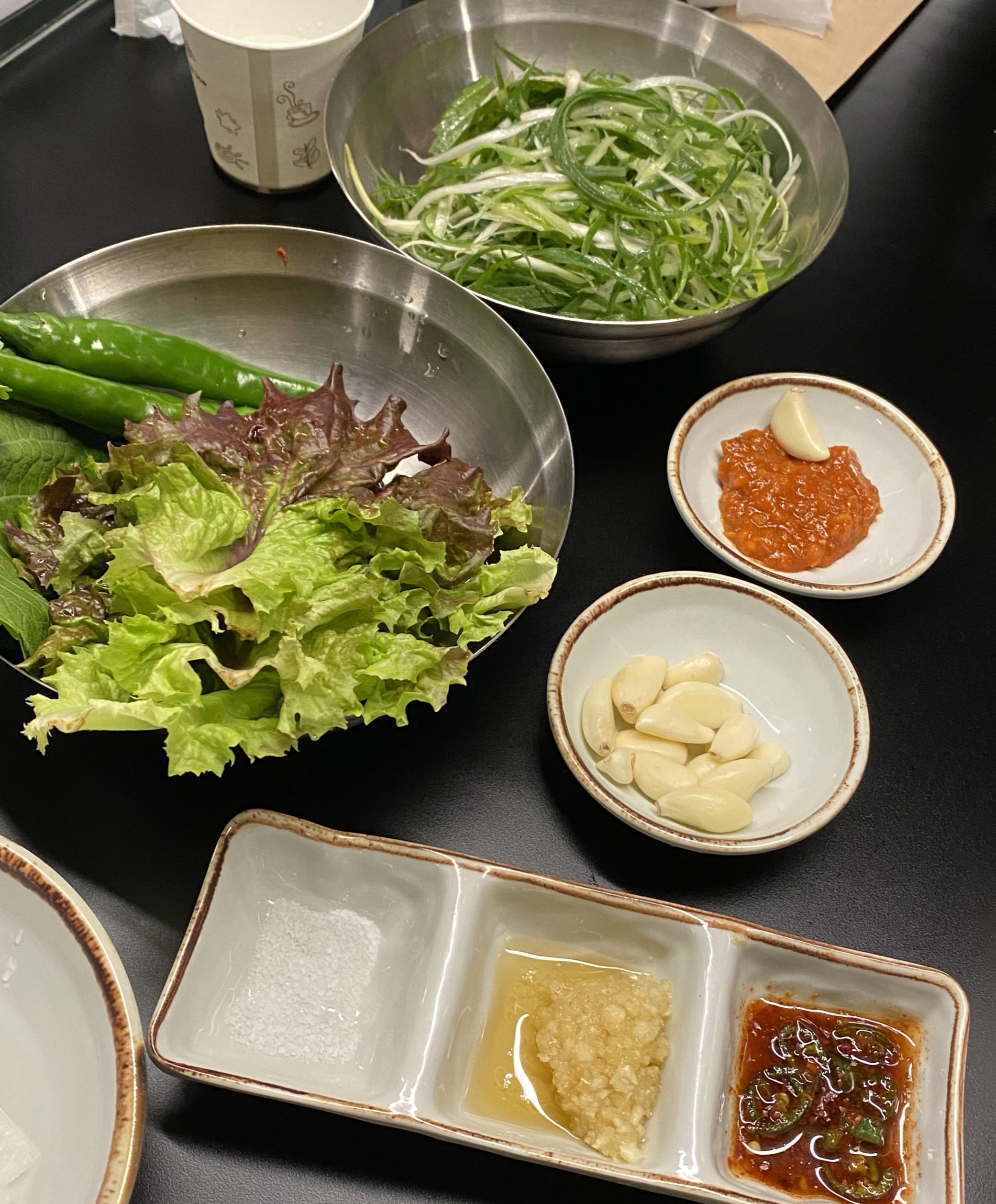 쌈채소와 쌈무가 준비돼요